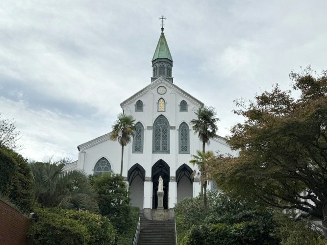 大浦天主堂は1864年に建立された残存する国内最古のキリスト教の教会堂で、1597年西坂の丘で殉教した日本二十六聖人に捧げられた教会として、殉教地である西坂に向かって建てられています。